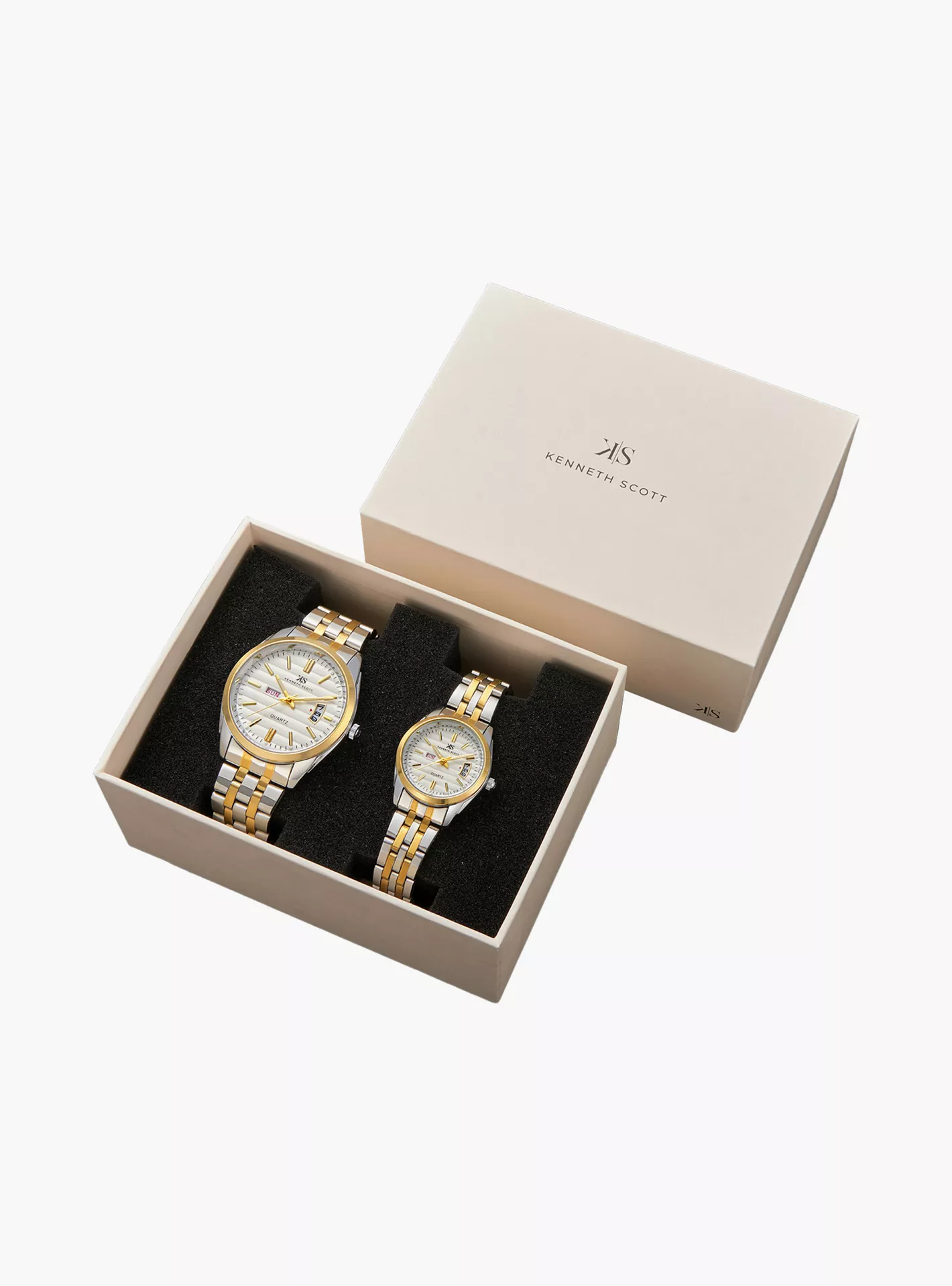Kenneth Scott Silver & Gold Analog Stainless Steel Strap Couple Watch Set | K23054P-TBTW