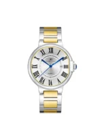 Round Alloy Gold Case With Analog Display, White Dial 41 mm Case Diameter, PE28 Movement, 3ATM Water Resistant Gold Stainless Steel Bracelet With Butterfly Buckle