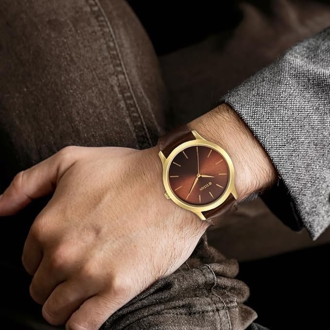 Titan Karishma Radiance Brown Dial Analog Leather Strap Watch for Men-TT1825WL04