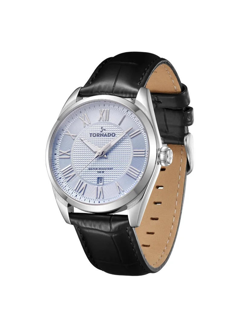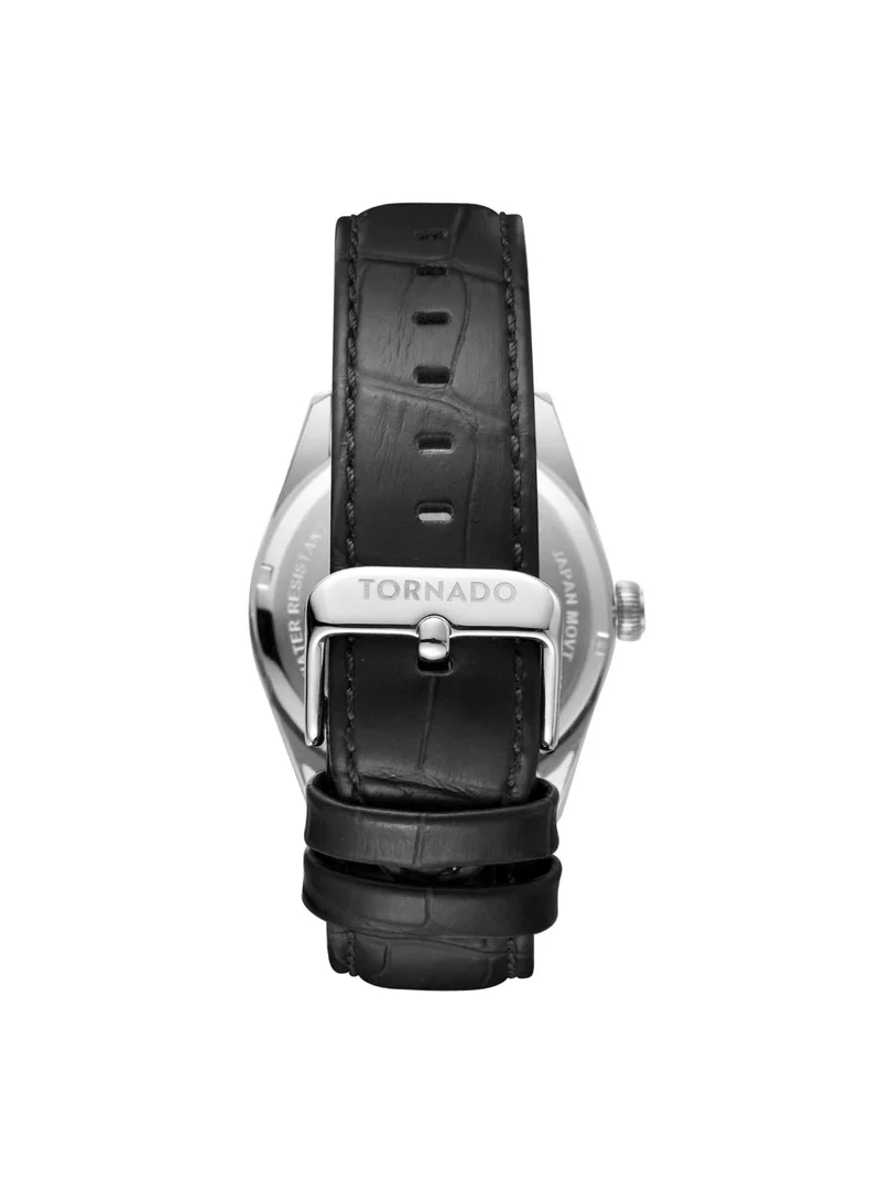 Tornado Men's Black Analog Leather Strap Watch T8007-SLBWG