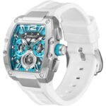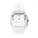 Rectangle High Quality Stainless Steel, Brushed Case Silver case with Analog display, Black Dial 43x54mm case diameter, VX9J,High Precision Japanese Quartz movement, 10ATM water-resistant Green Premium Flexible & Durable Silicone bracelet with Tang Buckle
